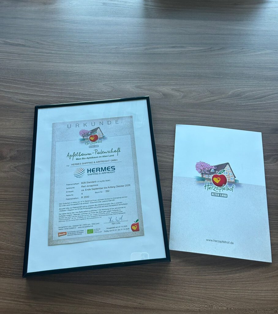 Wir als HERMES freuen uns, dass wir im Jahr 2026 eine Apfelbaum-Patenschaft beim Herzapfelhof im Alten Land übernehmen. Mit dieser Patenschaft möchten wir ein sichtbares Zeichen für Nachhaltigkeit, Regionalität und biologische Landwirtschaft setzen.
